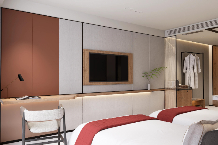 除整體人體工學設計外,家具的細節人體工學處理對用戶體驗至關重要。辦公空間的鍵盤托高度需與桌面保持合理距離,避免員工長時間打字導致手腕疲勞;鼠標墊區域可設計成弧形,貼合手腕自然曲線。餐飲空間的餐桌高度需適配餐椅,確保消費者用餐時手臂自然放置,肘部與桌面保持 15°-30° 夾角;餐椅的腳踏高度需合理,讓腿部自然下垂時腳掌能平穩接觸,避免懸空導致腿部酸脹。零售空間的試鞋凳,需設計成傾斜式,方便消費者抬腳試鞋,凳面邊緣做軟包處理,防止磕碰,這些細節設計能極大提升用戶使用的舒適度。山西民宿定制商業空間家具出廠價酒店大堂定制豪華接待臺與休息區沙發,融合酒店主題元素,給賓客留下印象。