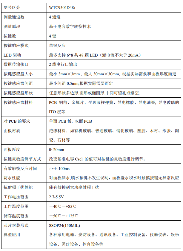 WTC9504D48 觸摸感應(yīng)按鍵的的技術(shù)特點(diǎn)